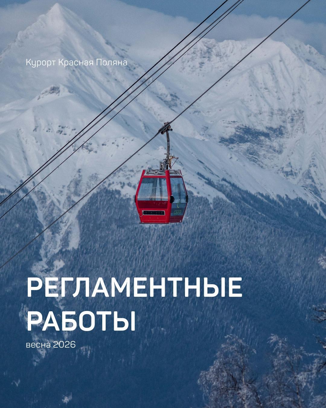 Уважаемые гости Курорта Красная Поляна, в целях обеспечения выполнения регламентных работ на канатной дороге «Красная Поляна» сообщаем вам о дополнительных днях остановки канатной дороги (помимо периода регламентных работ с 10.05.2026 по 31.05.2026)